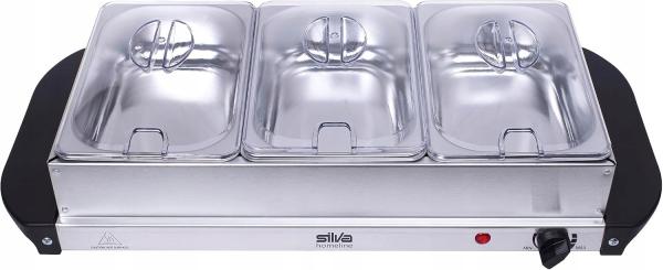 Posoda "stay hot" oziroma grelna posoda za hrano vzdržuje temperaturo hrane med 55 in 70st C. V treh 1.5 litrski posodi iz nerjavečega jekla in snemljivim prozornim pokrovom vaša hrana ostane topla. Lahko se uporablja tudi kot grelni krožnik brez posode za hrano.