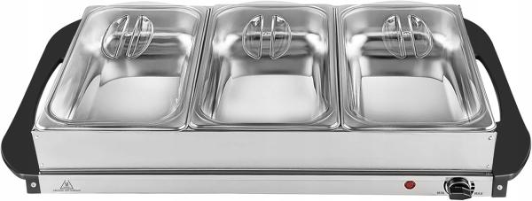 Silva Schneider SH 4.1 grelna posoda bo ohranila vaše jedi tople. Ponaša se s 3 posodami iz nerjavečega jekla s prostornino 2,5 l ter možnostjo regulacije toplote med 55 in 70°C.