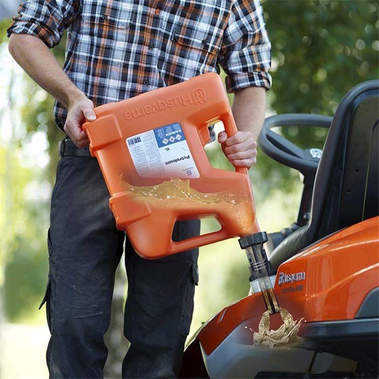 Husqvarnina popolnoma nova 15 litrska posoda za gorivo ponuja inovativen način polnjenja rezervoarjev za gorivo. Zahvaljujoč predvsem trem, edinstveno nameščenim, ergonomsko oblikovanim ročkam in edinstveno oblikovanimi žlebovi. Vse to nam omogoča, da posodo enostavno dvignemo in - kar je najpomembnejše - hitro dotakanje goriva brez izgub in polivanja.
