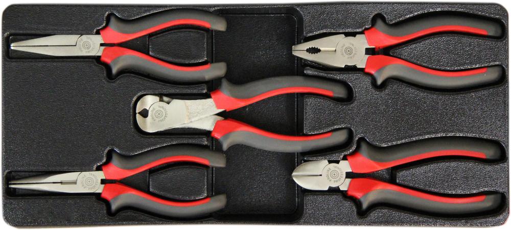 Predal orodja za klešče. Vsebuje 5 kom. klešč: univerzalne 160mm (28750), stranske ščipalne (28760), koničaste (28770), končno ščipalne (28765) in ploščate (28772). Mere predala: 395x180mm