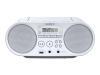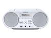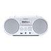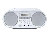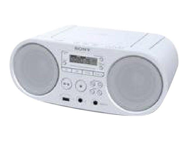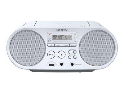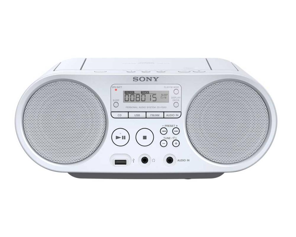 Z elegantnim CD-predvajalnikom ZS-PS50 intuitivne zasnove poslušajte vso glasbo. S tremi prednastavitvami lahko hitro najdete najljubše postaje, priključite pa lahko tudi predvajalnik mp3 za takojšnje predvajanje. Priložena sta zvočnika za še mogočnejši zvok, prek zvočnih vrat pa lahko priključite številne druge naprave.Vgrajen radijski sprejemnik AM/FM