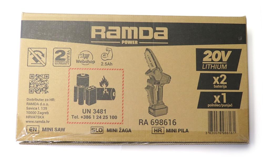 RAMDA Baterijska žagica 20V, meč 13cm, 2x baterija 2.5Ah + polnilec