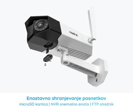 Shranjevanje posnetkov: microSD kartica (do 256 GB), na Reolink NVR snemalno enoto ali FTP strežnik