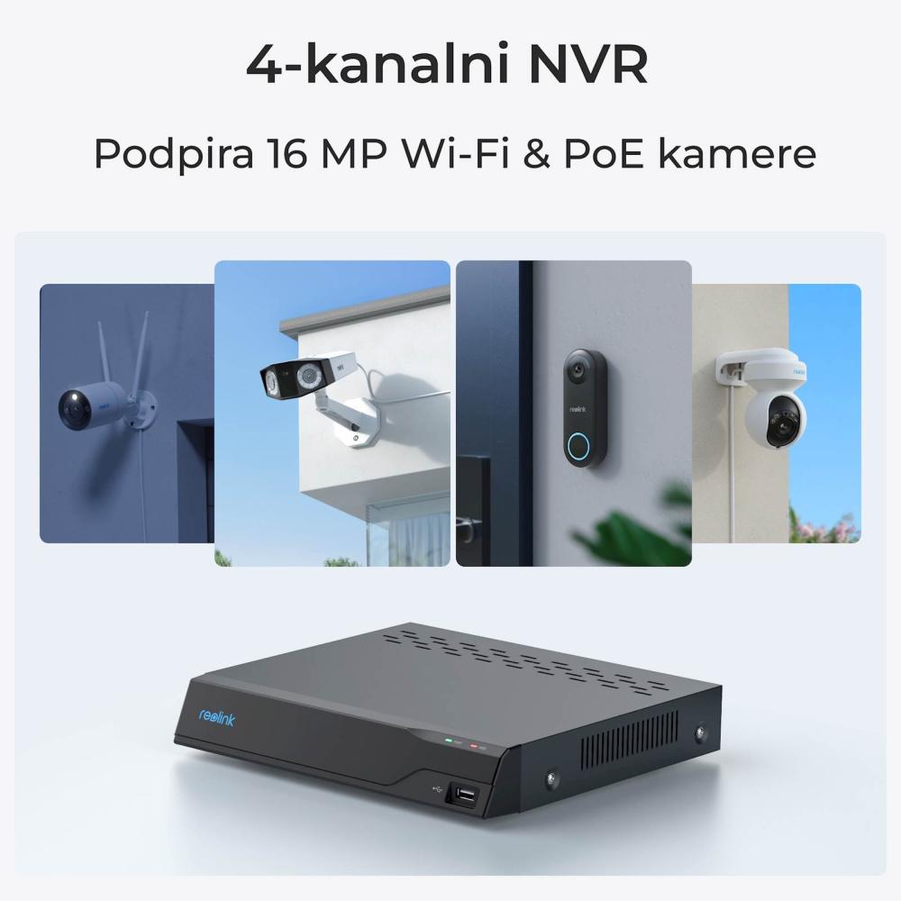 Reolink NVR snemalnik NVS4 16Mp, 4 kanalni POE, 24/7 snemanje, do 6TB HDD, odaljen dostop.