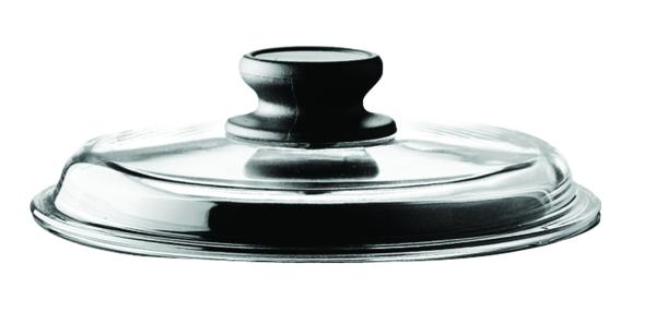 Ergonomsko oblikovan POKROV BOHEMIA premera 20 cm je narejen iz borosilikatnega stekla, ki je znano kot vzdržljivo, trajnostno in odporno. Na vrhu ima pritrjen črn bakelitni ročaj. Pomijemo ga lahko v pomivalnem stroju.