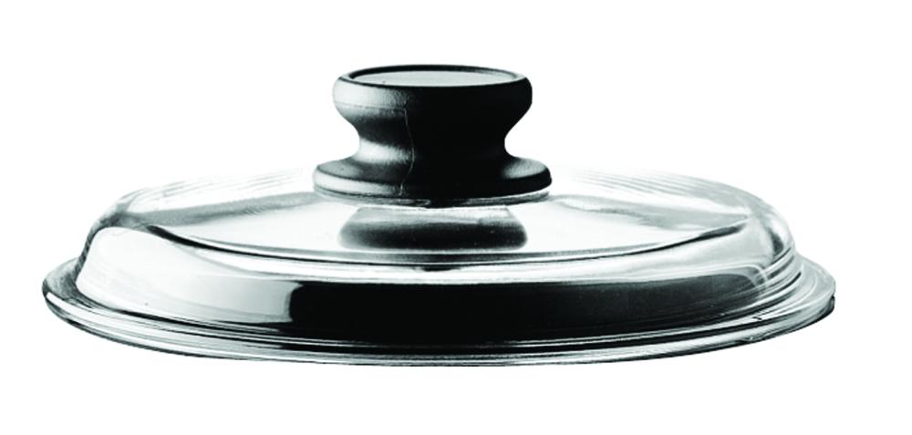 Ergonomsko oblikovan POKROV BOHEMIA premera 32 cm je narejen iz borosilikatnega stekla, ki je znano kot vzdržljivo, trajnostno in odporno. Na vrhu ima pritrjen črn bakelitni ročaj. Pomijemo ga lahko v pomivalnem stroju.