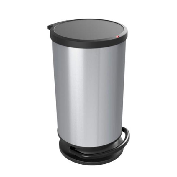ROTHO KOŠ ZA SMETI S PEDALKO PASO in prostornino 30 l je izdelan iz trpežne umetne mase kovinskega videza.