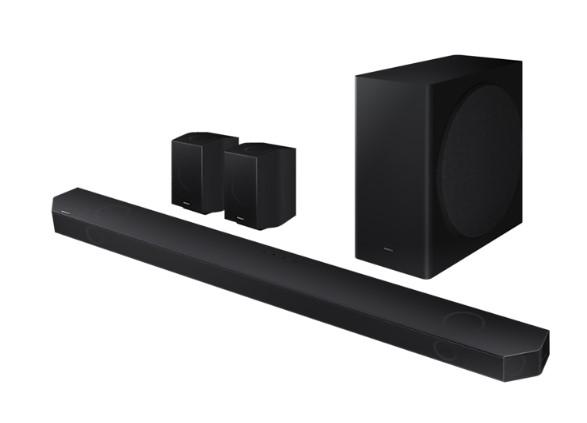 9 sprednjih in prostorskih kanalov zvočniške vrstice, 1 kanal za nizkotonski zvočnik in 4 kanali za pospeševanje zvoka vas ovijejo v zvok. Z novo dodanimi zadnjimi zvočniki zvok potuje in se odbija od stropa, da izboljša vašo izkušnjo prostorskega zvoka – odlično se ujema z vašim televizorjem QLED.