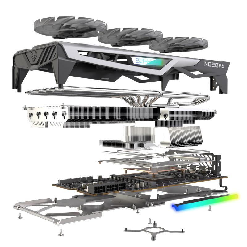 Tri-X Cooling Solution poganjata dva večja ventilatorja na zunanji strani in en manjši ventilator na sredini z vzvratno smerjo vrtenja za povečanje pretoka vetra pod ventilatorji. Tunelirana rebra na ventilatorjih pomagajo poveč ati konvekcijo zračnega toka, da se zagotovi, da je hlajenje Tri-X hlajenje z nizko temperaturo in nizkim hrupom. Ventilatorji so inteligentno nadzorovani, da držijo GPU, pomnilnika, PWM IC in drugih komponent, nižjo temperaturo.