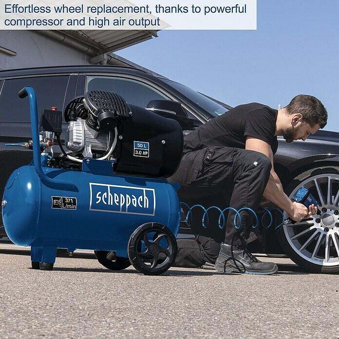 Odličen srednje velik dvovaljni kompresor HC 53 DC je odlična rešitev za večino delavnic, mizarjev ali celo zahtevnih domačih mojstrov. Vzdrži dolgotrajne neprekinjene obremenitve, zaradi visokega delovnega tlaka in 50-litrskega rezervoarja za zrak pa je idealen za uporabo s skoraj vsemi vrstami pnevmatskih orodij. Pogoj za profesionalno uporabo je doseganje konstantnega tlaka 10 barov, kar je pomembno za popolno namestitev dolgih žebljev (100 mm), za spenjanje, kovičenje za rahljanje avtomobilskih vijakov, za škropljenje itd. Dvovaljni motor ima visoko moč 3 KM, kar zagotavlja zelo hitro ponovno polnjenje 50-litrskega rezervoarja. Splošna in pomembna značilnost dvovaljnih motorjev je njihova daljša življenjska doba. Enostavna mobilnost stroja je bistvenega pomena za številne aplikacije. Ta kompresor je kljub svoji zmogljivosti še vedno razmeroma kompakten, njegov prevoz pa olajšajo kolesa in velik ročaj. Druga oprema: zračni manometer, manometer za preverjanje nastavljenega delovnega tlaka, redukcijski ventil, tlačno stikalo, izpustni ventil, povratni ventil, varnostni ventil, zračni filter, optični indikator nivoja olja, vozna kolesca, ročaj.