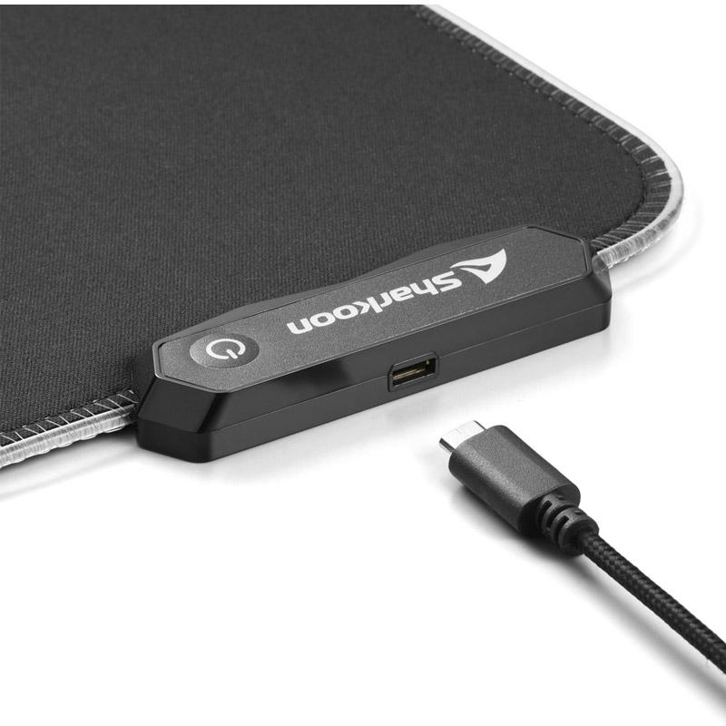 Nadgrajen krmilnik 1337 RGB V2 najdete na zgornjem levem robu podloge za miško. S tanko višino, le 9 milimetrov, krmilnik ostaja nizek in neopazen. Krmilnik je povezan z osebnim računalnikom prek snemljivega USB kabla, s priključkom micro-B.