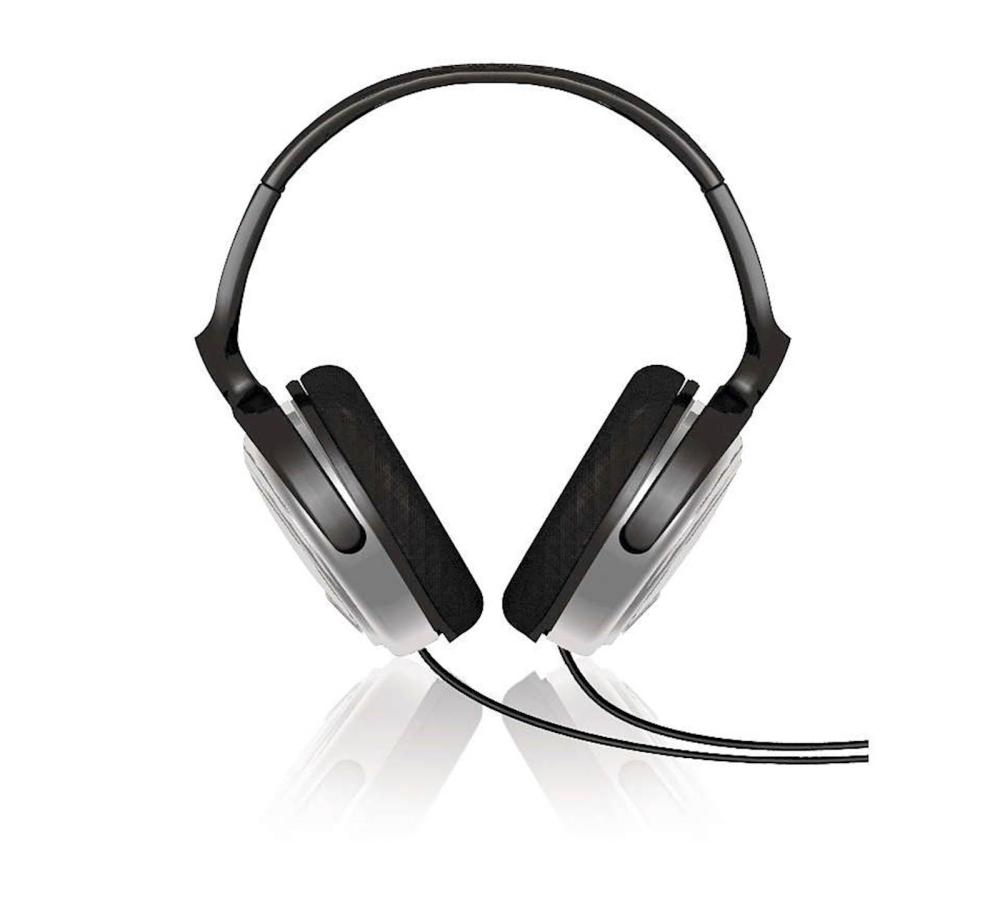 Slušalke polne velikosti za glasbeni sistem in televizor z akustičnim reflektorjem za izboljšano reprodukcijo nizkih tonov.