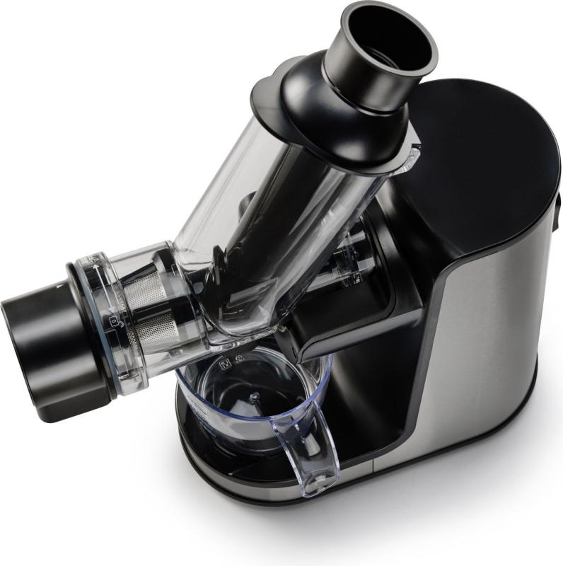 Ujemite vitamine - Okrepite svoj imunski sistem, Tehnologija mletja - Sokovnik stiska namesto strganja, Doziranje celega sadja - Odprtina in cev za doziranje XXL