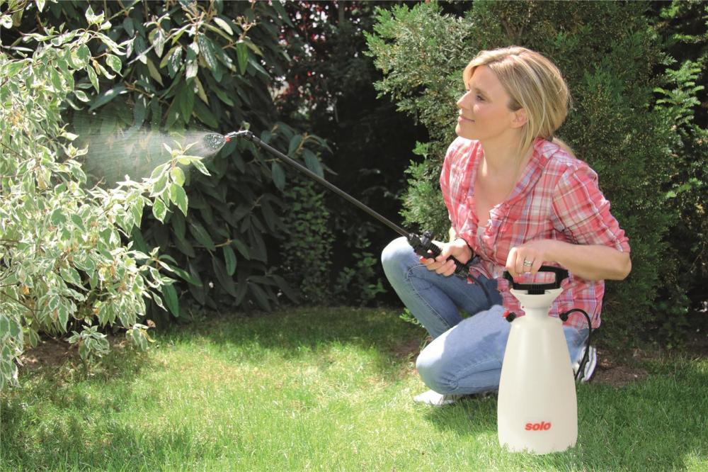 Škropilnica ročna SOLO 212. Škropilnica je udobna, lahka in zanesljiva, izdelana v Nemčiji. Stabilna, čvrsta posoda je iz mešanice polietilena z UV stabilizatorjem. Zelo zmogljiva črpalka je izdelana trpežne plastike. Črpalka omogoča zelo hitro in učinkovito povečanje tlaka. Samodejni razbremenilni ventil, enostaven za uporabo, omejuje tlak zaradi varnosti uporabnika. Tlak v rezervoarju se lahko sprosti tudi ročno preko ventila, na primer po koncu škropljenja. Škropilna palica je sestavljena iz fleksibilnega, nezlomljive kemično odporne plastike.