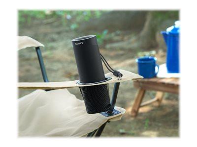 SRS-XB23 je kompakten in lahek, zato ga lahko namestite v držalo za skodelice na stolu za kampiranje, kar je kot nalašč za sproščanje na festivalih na prostem. Na voljo je še priročen trak, da lahko zvočnik obesite nekam v šotoru ali na najbližje drevo – kjer pač želite skupaj z drugimi uživati v priljubljenih ritmih.