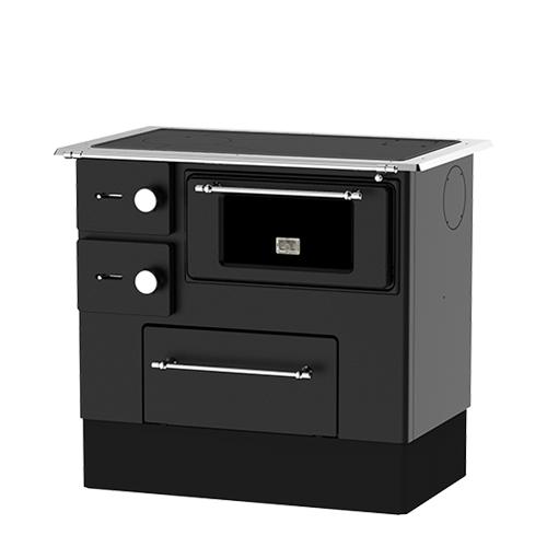 Jeklene kuhalne plošča. Ploščo je možno odstraniti in jih temeljito očistiti. Kurišče obloženo s šamotnimi ploščami, ki akumulirajo toploto in povečujejo temperaturo zgorevanja. Regulatorji dovoda primarnega in sekundarnega zraka na vratih pepelnika in vratih zgorevalne komore. Dovod sekundarnega zraka zagotavlja čistejše zgorevanje, tj. zgorevanje predhodnih produktov nepopolnega zgorevanja. Ima vgradni termometer za pečico, predal za gorivo se nahaja v spodnjem delu peči.