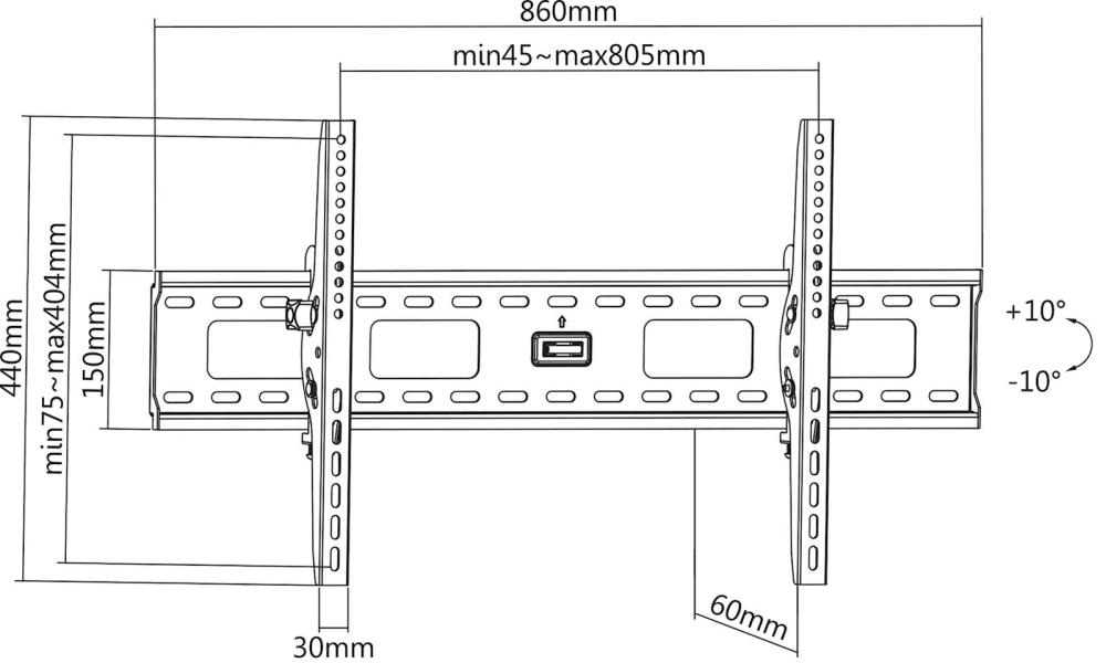 Manhattan Stenski nagibni TV nosilec 37''-85'' , 75kg, naklon ±10°, črne barve