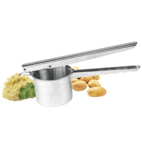 EVA STISKALEC KROMPIRJA je izdelan iz nerjavečega jekla 18/8 in je idealen za pripravo gladkega pireja brez grudic. Primeren je za stiskanje različne zelenjave kot so krompir, korenček, koleraba … in sadja za izdelovanje otroških kašic. Perforirana posoda ima luknjice s premerom 3 mm. Ergonomičen ročaj z distančnikom omogoča enostavno uporabo.