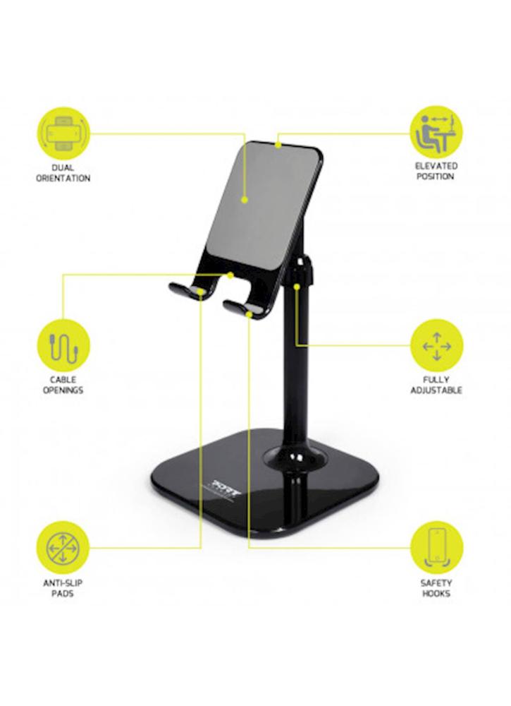 Ergonomsko namizno držalo za vsak pametni telefon debeline do 1,6 cm za popolno optimizacijo delovnega prostora. Njegov povišan položaj, v višini oči, zmanjšuje bolečine v vratu. Je idealen za video sestanke, klepet ter za vsakodnevno uporabo. Njegova višina in kot sta popolnoma nastavljiva. Nosilec za prostoročno telefoniranje je zasnovan za pisarniško uporabo. Njegova oblika in nedrseča blazinica zagotavljajo stabilnost naprave.