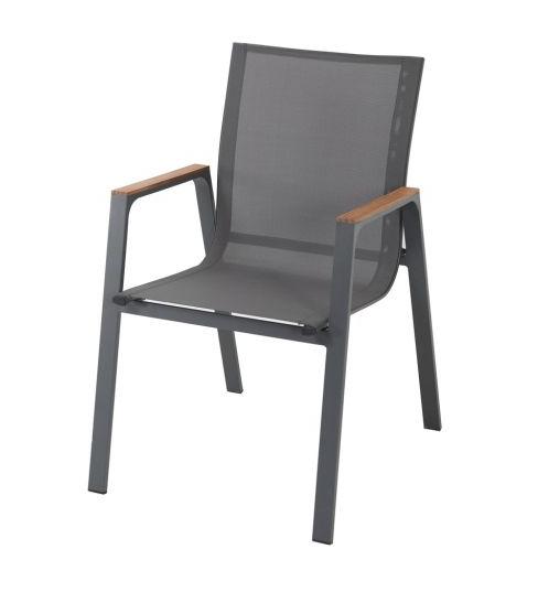 Jedilni stol Prato mere (šxgxv) 56.5 x 67 x 90 cm. Naslon stola je imitacija naravnega lesa, narejena iz umetne mase. Ta je prijetna na otip in odporna na vremenske razmere.