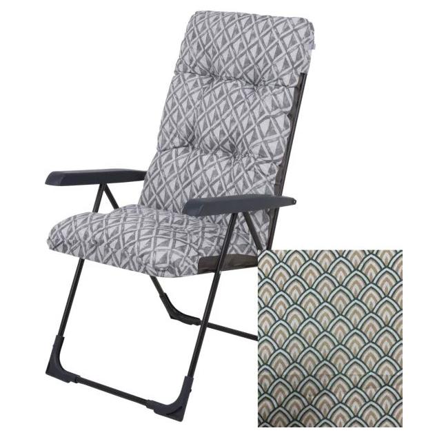 Za slednje poskrbi 7-pozicijski naslon z razkošnim oblazinjenjem in naslonom pravokotne oblike, stabilnost zagotavlja trpežno prašno barvano kovinsko ogrodje.