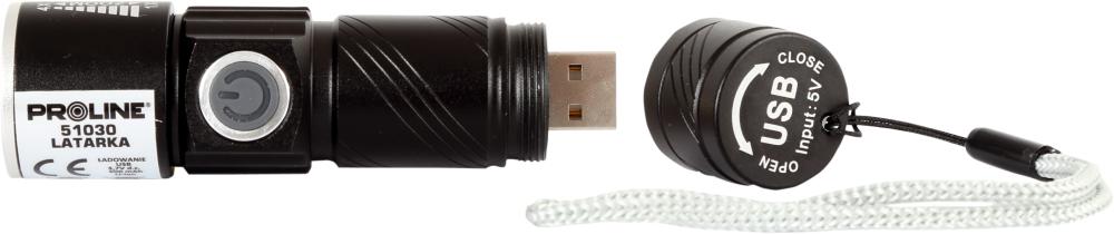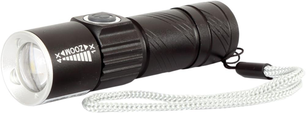 Prenosna USB LED svetilka opremljena z dolgotrajnim LED XTE svetlobnim tokom 160Am. Vsebuje Li-ion baterijo s 600mAh. S fiksno USB vtičnico je dostop do številnih virov našajanja olajšan (npr. powerbanki, USB vtičnice v avtomobilih, prenosnih računalnikih, polnilnikih telefonov,..) Funkcija ZOOM (približevanje). Način delovanja: 100% svetlost, 50% svetlost, utripanje, utripanje po kodi SOS. Vključuje priročno vrvico za zapestje.