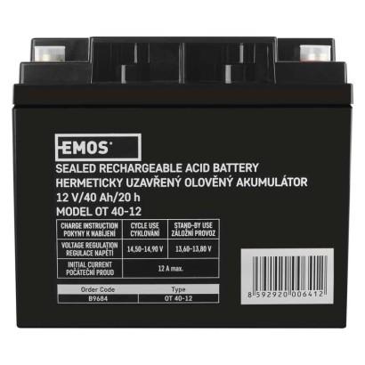 Akumulator EMOS je primeren kot rezervna baterija pomožno napajanje UPS, RBC nadomestne baterije, zasilno razsvetljavo, elektronske sisteme EZS, EPS ipd.Z ventilom upravljan svinčen akumulator brez vzdrževanja v izvedbi AGM omogoča uporabo v poljubnem položaju. Optimalna življenjska doba v pomožnih sistemih je 5 let.