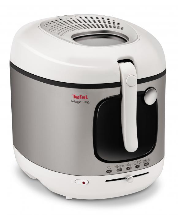 Cvrtnik Tefal FR480015 »Mega« s prostornino 2 kg je največji Tefalov cvrtnik, ki omogoča pripravo porcij za 8 oseb hkrati.