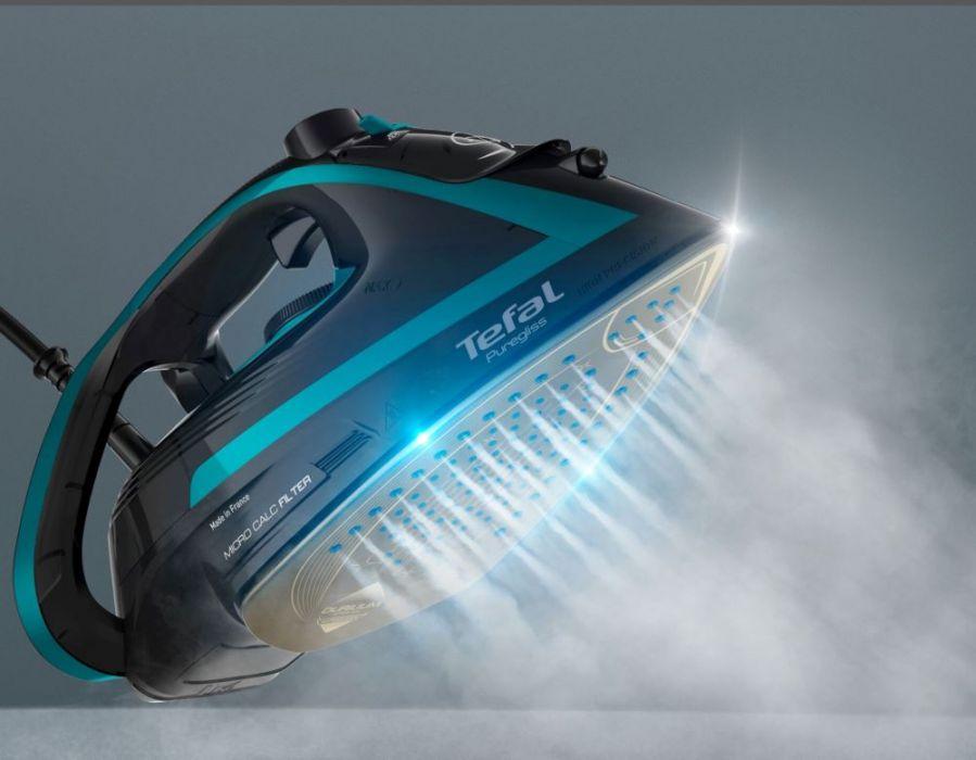 Visoko zmogljiv parni likalnik Tefal FV8066E0 Puregliss z močjo 3000 W, z izhodom pare 50 g/min in z udarom pare 280 g/min. Naša patentirana tehnologija Micro Calc Filter preprečuje nastanek madežev in popolnoma ščiti vsa vaša oblačila in perilo.