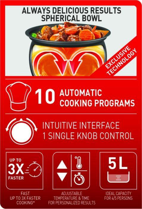 Tefalova ekskluzivna sferična tehnologija zagotavlja mehkejše in sočnejše rezultate, medtem ko intuitiven, uporabniku prijazen gumb omogoča enostavno uporabo.