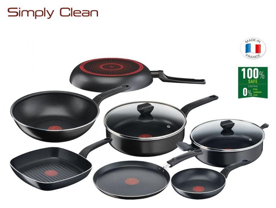 Globoka ponev Tefal Simply Clean 24 cm B5673253, z nelepljivo površino Titan, je odličen pomočnik za okusno pripravo mesa, zelenjave, tofuja in drugih živil.
