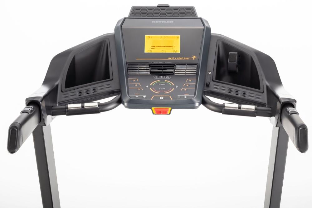 Osvetljen LCD zaslon je velik 132 x 85 mm in prikazuje veliko koristnih informacij, vključno s hitrostjo, časom, razdaljo, srčnim utripom in porabljenimi kalorijami. Druge prednosti tekalne steze Kettler so tih motor, senzorji za merjenje srčnega utripa na držalih, največja hitrost 18 km/h in kolesa za lažje premikanje po prostoru. Za zagotavljanje maksimalne varnosti, je tekalna steza opremljena z varnostnim ključem, ki takoj zaustavi delovanje tekalnega traku ob morebitnih neprijetnostih.