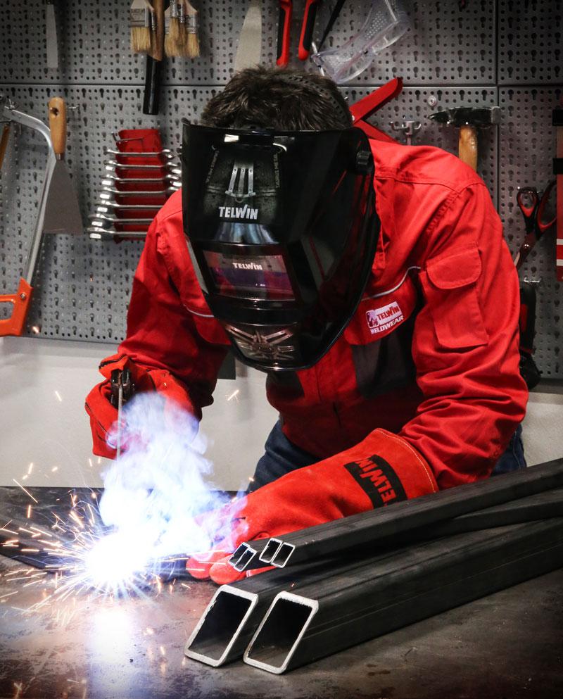 Ročna maska za varjenje TELWIN LION. Maska je opremljena s fiksnim samozatemnitvenim steklom. Primerna je za MIG/MAG, TIG IN MMA varjenje.
