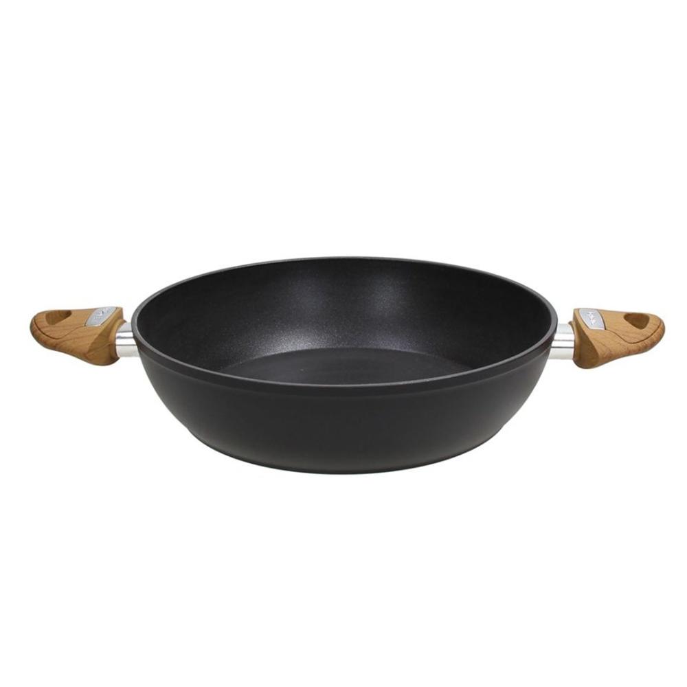 Ponev Tognana COUNTRY CHIC z dvema ročajema je izdelana iz stiskanega aluminija z inovativno notranjo prevleko, ojačano z diamantnim prahom in tehnologijo 'longlife diamond tech', ki materialu omogoča dolgotrajno obstojnost in odpornost pred obrabo. Kuhanje v takšni ponvi je enostavno, hrana pa se tudi brez dodajanja maščob ne sprijema. Premer ponve meri 28 cm, visoka pa je 7 cm. Odebeljeno dno meri 3,5 cm, debelina sten pa znaša 2,5 cm. Ponev z minimalističnim dizajnom je, zahvaljujoč zunanji prevleki X-Black, odporni na visoke temperature in mehkim 'soft touch' ročajem v imitaciji lesa, sodobnega videza in vsestransko uporabna. Primerna je za vse kuhalne površine, vključno z indukcijo. Ravno tako je primerna za pranje v pomivalnem stroju.