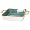 Pekač iz porcelana iz linije GLAMOUR UDON meri v dolžino 24 cm, v širino 18,5 cm, visok pa je 4,5 cm. Od zlatih robov na obrobah in ročajih do turkizno zeleno-modre barve, ki prekriva celoten notranji del, daje eksotični pridih vaši mizi. Pekač je idealen za pripravo toplih predjedi, glavne jedi ali raznih prilog. Lepo se poda še z drugimi elementi iste linije različnih oblik in velikosti, ki skupaj tvorijo edinstveno trendovsko celoto.