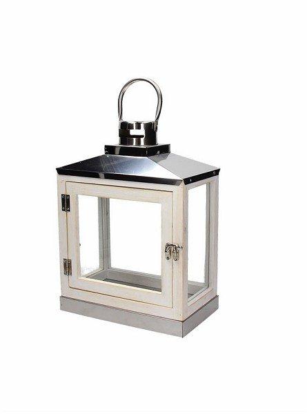 Pravokotna laterna Mirabell višine 48 cm je izdelana v kombinaciji lesa in nerjavečega jekla. Lepo se bi podala v preznično okrašen dom ali teraso.