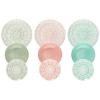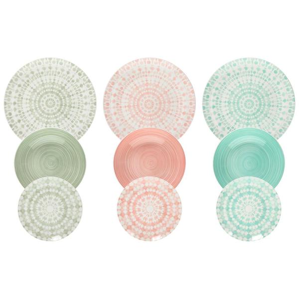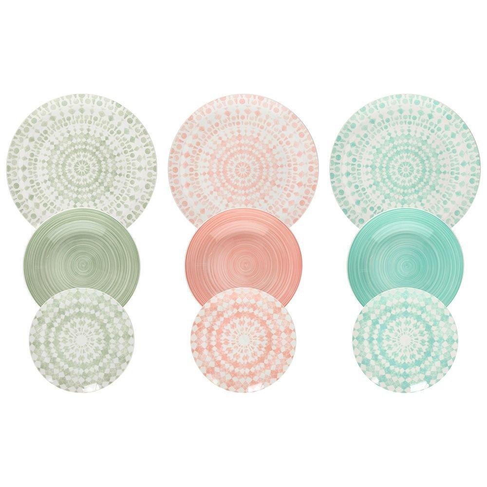18-delna garnitura krožnikov Tognana iz linije GIPSY SOFT iz finega porcelana je sestavljena iz 6 plitvih, 6 jušnih in 6 desertnih krožnikov. Barvni vzorci povzemajo italijanski rustikalni slog - so sveži in živahni hkrati, skoraj nekoliko "gipsy". Dopolnite izgled vaše mize še z enakimi čajnimi ali kavnimi skodelicami kolekcije Metropolis Gipsy Soft.