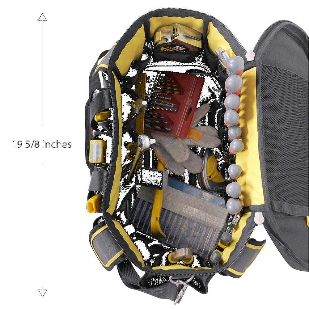 Stanley Fatmax okrogla torba za orodje 81˝ - Velika zmogljivost - okrogla zgradba, ki nudi dodatno zmogljivost in možnost shranjevanja v primerjavi z navadnimi torbami - Brizgano dno iz polipropilena nudi zaščito pred mokrim in vlažnim površinam - Iz močnega 600D materiala - izredno trpežen material za notranjo zaščit pred poškodbo in obrabo orodja - Navpični žepi za sgranjevanje omogočajo hiter in enostaven dostop do vsega orodja - Ergonomska oblika z oblazinjenim ramenskim delom in ročajem iz gume omogočata udobno nošenje težkih tovorov