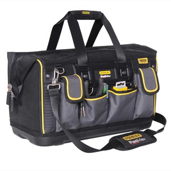 Velika zmogljivost in inovatvna oblika. Široko odpiranje na zgornji strani omogoča celoten pregled nad orodjem in lažji dostop do električnega in ročnega orodja. Dno je zaščiteno proti mokrimi površinami. Različne rešitve za držalo za merilni trak, držalo za izolacijski trak in drugo. Dimenzije: 50x30x29 cm.