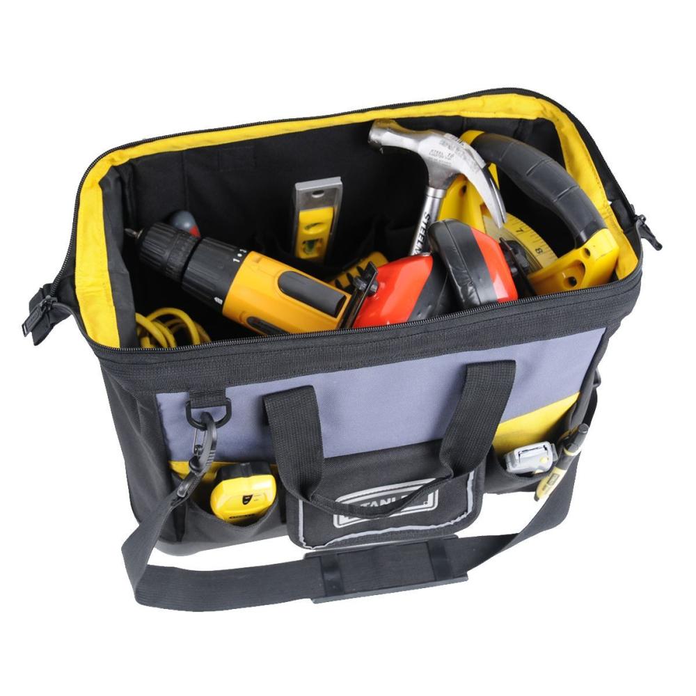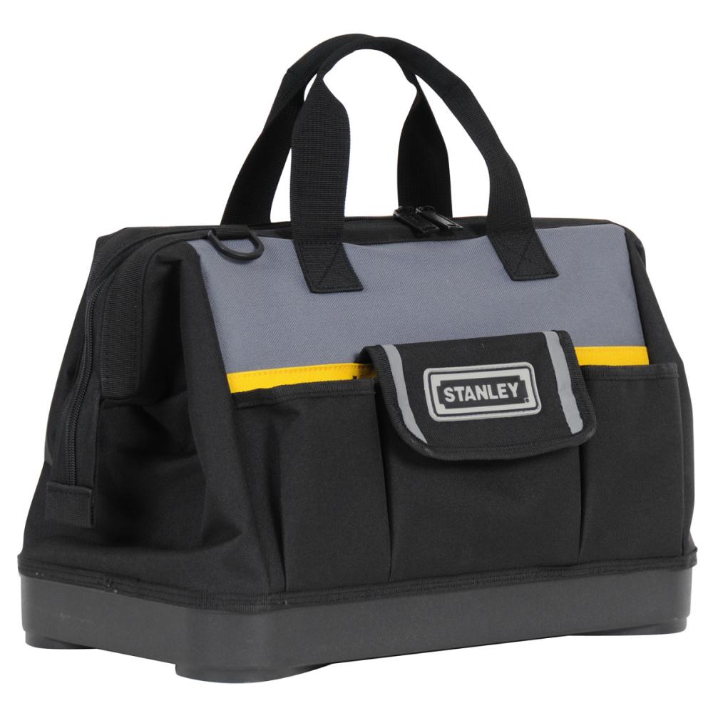 Stanley torba za orodje z zgornjim odpiranjem - 600 x 600 denski materijal za večja bremena, trpežen in vzdržljiv - Trdna oblika, ki lahko sama stoji v odprtem položaju in tako omogoča dostop do vsega orodja - Maksimalno organiziranost omogočajo številni notranji in zunanji žepi - Nastavljiv ramenski trak za lažje nošenje orodja - Sprednji pokriti žep zagotavlja varno shranjevanje majhnih delov ali osebnih predmetov - Ojačano in trpežno dno iz plastike ščiti pred mokrimi in vlažnimi površinami