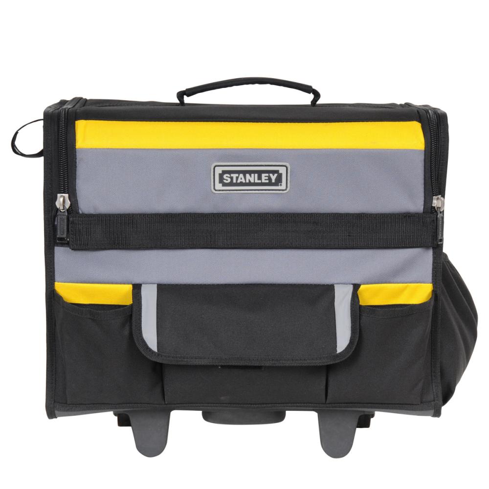 Stanley mehka torba za orodje s kolesi - Trdna oblika z odpiranjem po celotni dolžini omogoča lažji dostop do orodja - Žep za dokumente - 600 x 600 denski material je primeren za večja bremena - Shranjevanje orodja za vrtanje in ostalega orodja - Odstranjevalni razdelki omogočajo maksimalno organiziranost in priročnost orodja za vrtanje - Ročaj za nošenje in kolesa za lažji transport orodja - Številni notranji in zunanji žepi in zanke omogočajo maksimalno organiziranost orodja - Pokrit žep zagotavlja varno shranjevanje majhnih delov ali osebnih predmetov