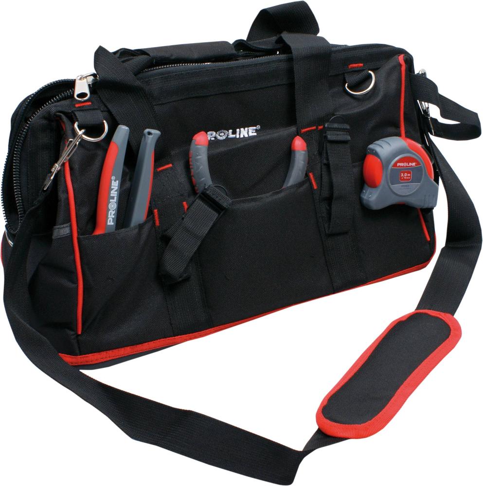 Torba za orodje na osnovi gume -20 žepov (11 notranjih, 9 zunanjih) + elastičen trak + držalo -vodotesna podloga na dnu torbe, odporna na kakršne koli mehanske poškodbe, tudi pri nizkih temperaturah -mehak, udoben, nastavljiv naramni trak -mehko in udobno držalo -torba z zadrgo -upoštevajte, da se nahrbtnik prodaja brez orodja -dimenzije: 380x260x320mm