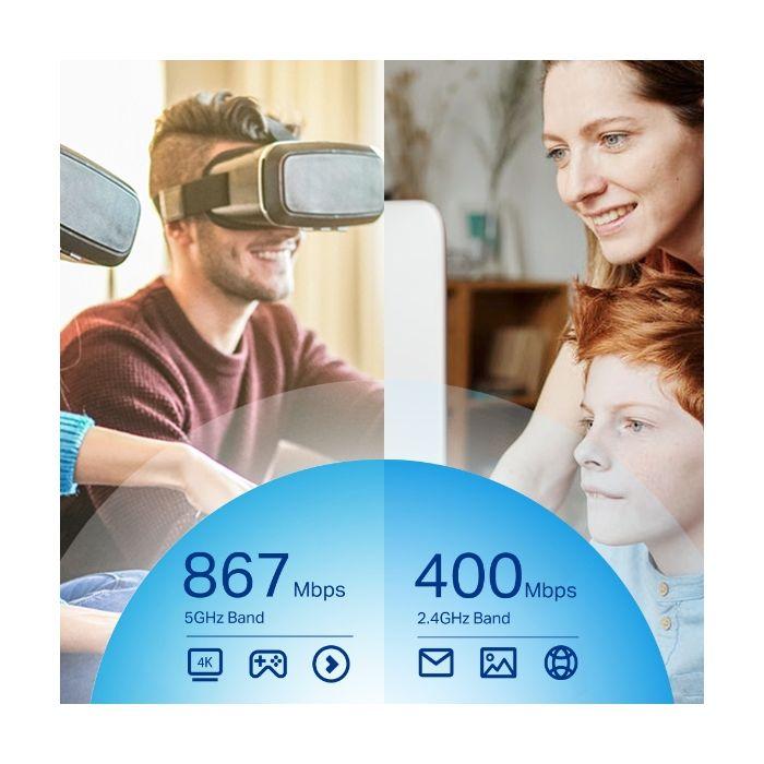 Archer T4U Plus omogoča vašemu računalniku dostop do tehnologije 802.11ac, medtem ko sprejema signale WiFi v dveh ločenih pasovih, s čimer poveča hitrost do 1,2 Gbps (do 400 Mbps pri 2,4 GHz in 867 Mbps na 5 GHz). To pomeni boljšo izkušnjo mreženja za vse vaše spletne potrebe. Izberite pas 2,4 GHz za brskanje po spletu, e-pošto in družabne medije ali preklopite na 5 GHz za igranje iger, pretakanje HD in prenos velikih datotek.