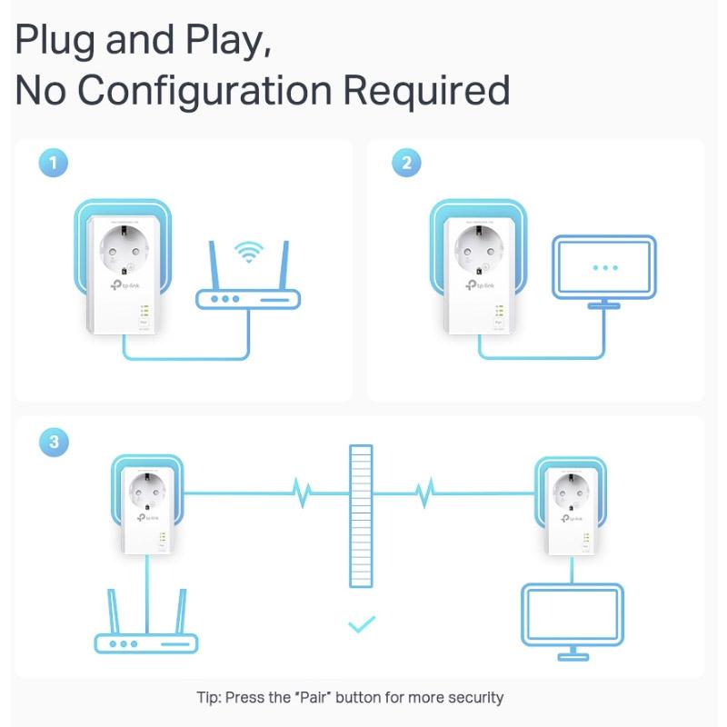 Ta komplet z napredno tehnologijo HomePlug AV2 uporabnikom omogoča visoke hitrosti prenosa podatkov do 1000 Mbps, kar je idealno za aplikacije, ki zahtevajo veliko pasovno širino, kot so hkratno pretakanje videa HD/3D/4K, spletno igranje iger in prenos velikih datotek. Samo priključite in uživajte!