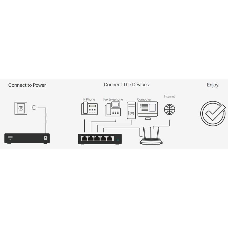 TP-Link 16-Port 10/100/1000 Mbps namizno stikalo vam omogoča enostaven način za prehod na Gigabit Ethernet. S tem povečate hitrost omrežnega strežnika. Plug and Play zasnova, ki ne zahteva konfiguracije, omogoča enostavno uporabo izdelka.