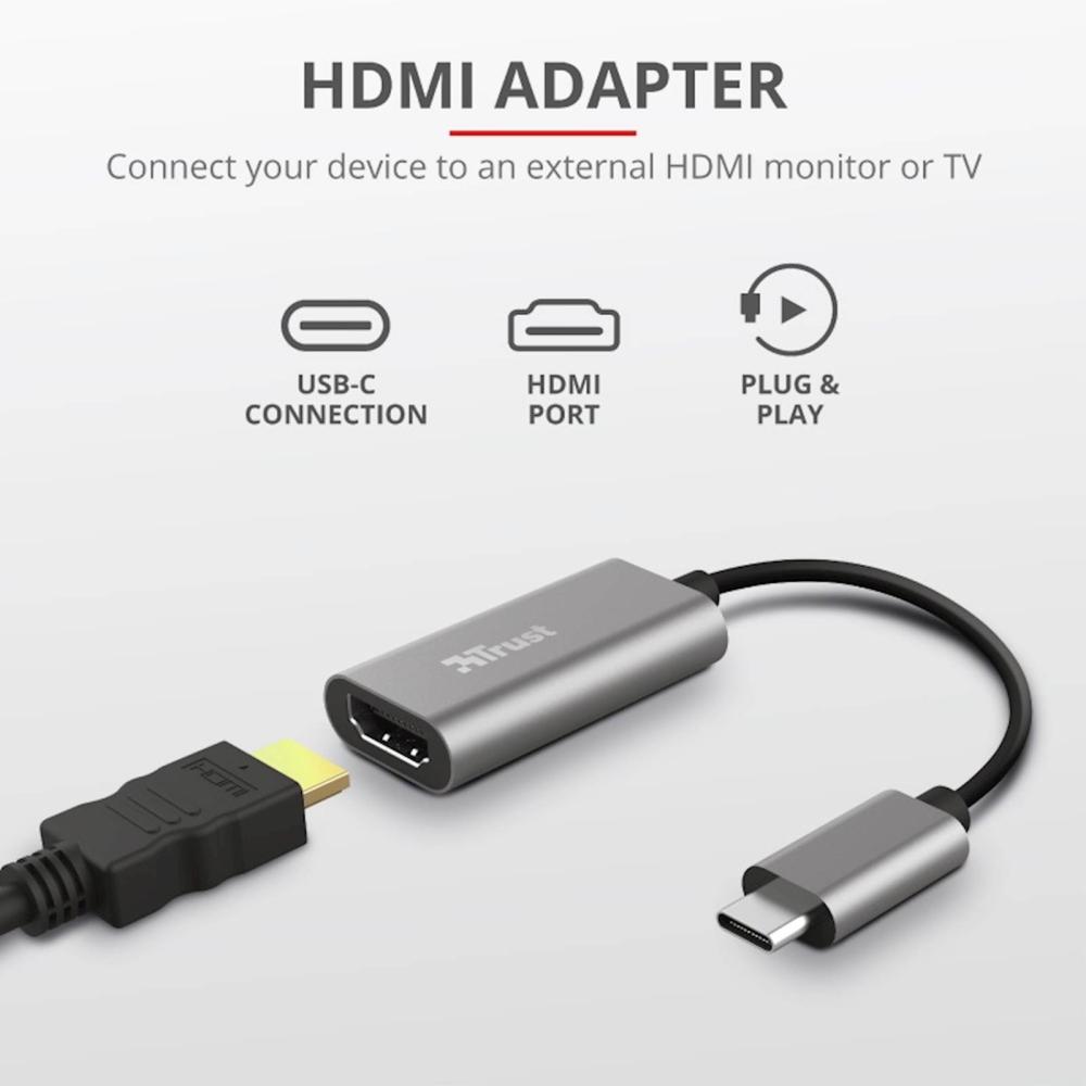 Pretvornik iz USB-C v HDMI z video in večkanalno zvočno podporo 4K Ultra HD. Povežite svoj osebni računalnik / prenosni računalnik / Macbook ali drugo napravo z zunanjim monitorjem HDMI ali televizijo. Deluje na prenosnih računalnikih in drugih napravah z vrati USB-C, ki podpirajo video izhod. Ogled vsebine v odlični kakovosti z z video in večkanalno zvočno podporo 4K Ultra HD, vključno s formati DTS in Dolby. Izredno visoka ločljivost slik in bogate barve zahvaljujoč priključku HDR in HDMI 2.0 (4k60 Hz). Trpežno in moderno oblikovano lito ohišje iz aluminijeve zlitine. Majhna velikost, priročno za na potovanja