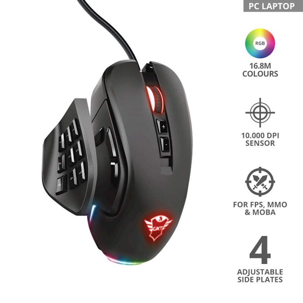 Igralna miška ima največji vpliv tudi pri najmanjšem gibanju, zato je bolje, da je natančna. Predstavljajte si tako natančno miško, da je popolnoma prilagojena vašemu igralnemu slogu in počne točno tisto, kar želite. Prilagodljiva miška uresniči te sanje; Trust GXT 970 Morfix prilagodljivo igralno miško lahko prilagodite vašim edinstvenim igralnim željam. S 14 neodvisno programibilnimi gumbi (odvisno od izbrane stranske plošče) ste lahko prepričani v resnično prilagojeno izkušnjo. Napredna programska oprema vam omogoča programiranje gumbov in makrov, tako da lahko z enim klikom zaženete do 168 dejanj. Lahko celo prilagodite nastavitve svetlobe.