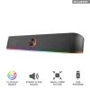 Gaming soundbar znamke Trust je odlična alternativa kompletu zvočnikov, saj je majhen a zmogljiv, nudi jasen zvok z največjo močjo 12 W in nepogrešljivo RGB osvetlitev s 6 svetlobnimi načini, ki vam popestrijo poslušanje glasbe. Zaradi majhnih dimenzij se odlično poda pred monitor ali televizor. Priročna lastnost je velik osvetljen gumb za nadzor glasnosti, ki je takoj pri roki tudi med igranjem. Z zvočno vrstico se lahko povežete žično prek Aux In kabla za zvok in USB kabla za napajanje.