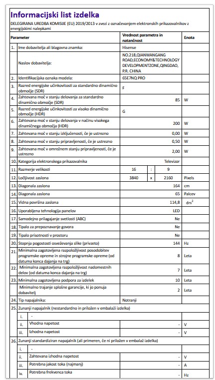 | Uporabniški vmesnik: | VIDAA U7.6 Internet |