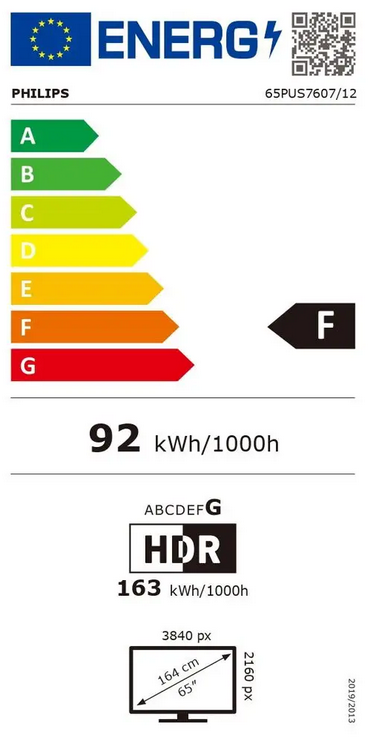 | Zaslon/prikaz | Diagonala: 164 cm (65") Ločljivost: 4K Ultra HD (3840 × 2160) Vrsta osvetlitve: Direct LED Frekvenca plošče: 50 Hz Druge funkcije: visok dinamični razpon (vključno s HDR10+ Adaptive, HLG in Dolby Vision), Pixel Precise Ultra HD izboljšava slike |